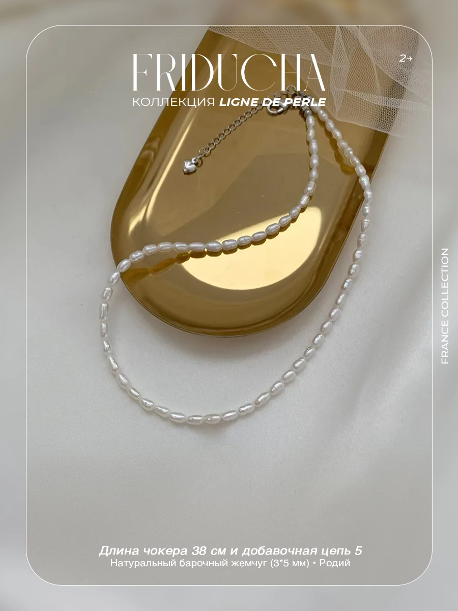 Лёгкий вес, стандартная длина 38 см + удлинитель 5 см, гибкая посадка под любой вырез. Мини-жемчуг даёт «чистый» свет и не перегружает ни офис, ни вечер; барочный — добавляет выразительный объём без излишнего блеска. Все модели — идеальная база для слоёв с тонкими цепочками, подвесками на карабине и браслетами Friducha. Для крупных зерен (Rivage) используйте фронтальный карабин-адаптер/кольцо 18 мм: подвески меняются за секунду.